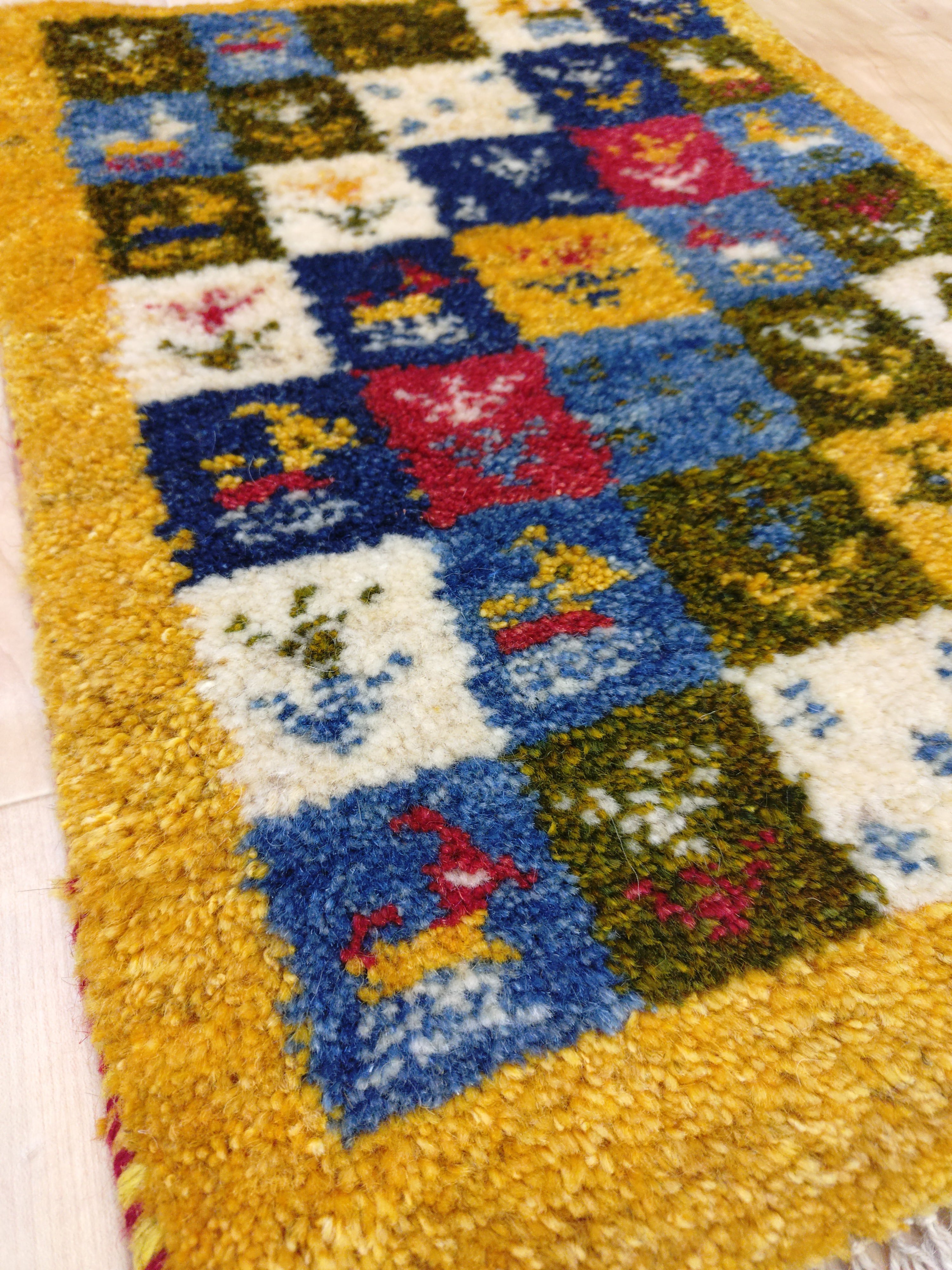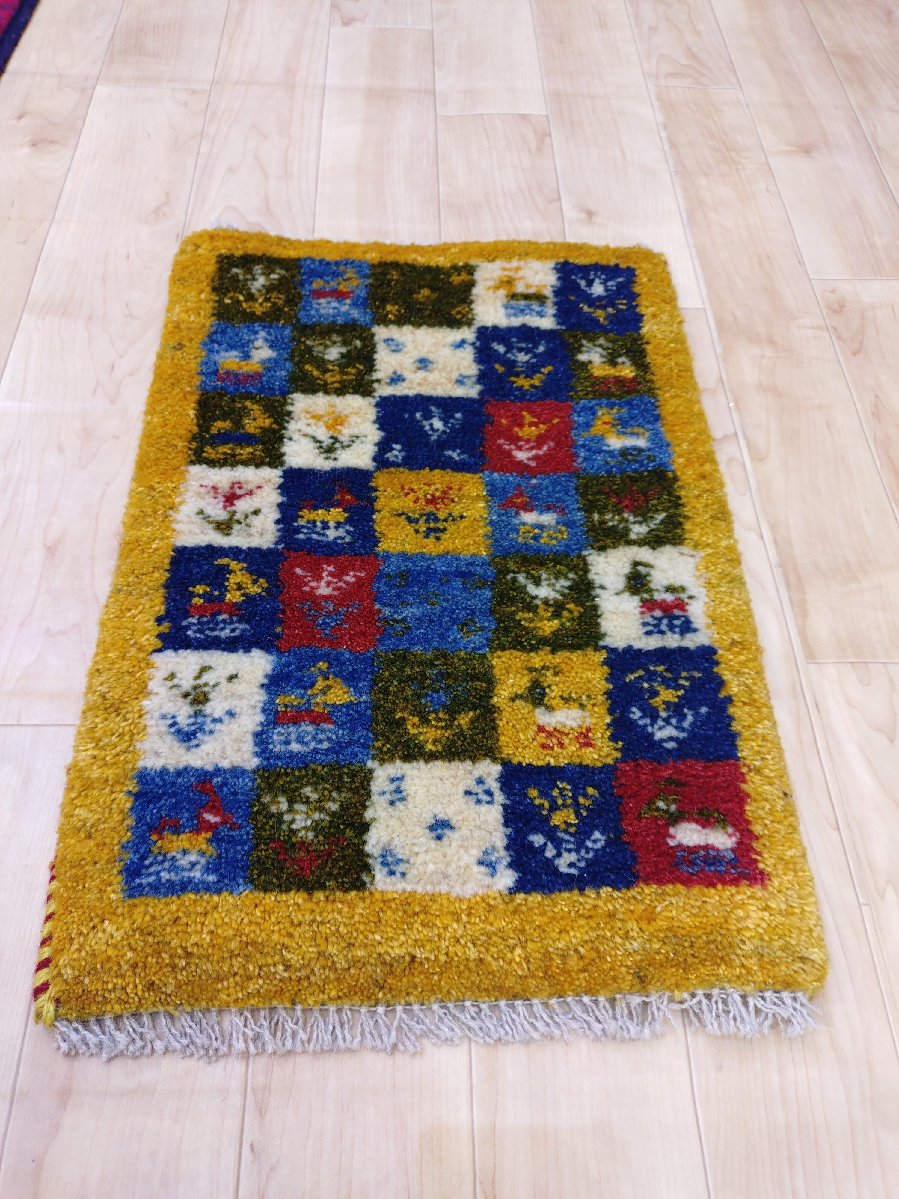「カラフルなチェック柄」ペルシャギャッベマット【約40x60cm】(送料無料)