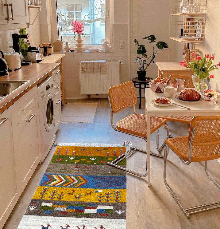 細長いランナーと呼ばれるサイズで、キッチンマットやベッドサイドなど、ちょっとしたスペースに敷いていただけます。程よい厚みがあり、クッション性にも優れ、足元の冷え対策にも一役かいます。