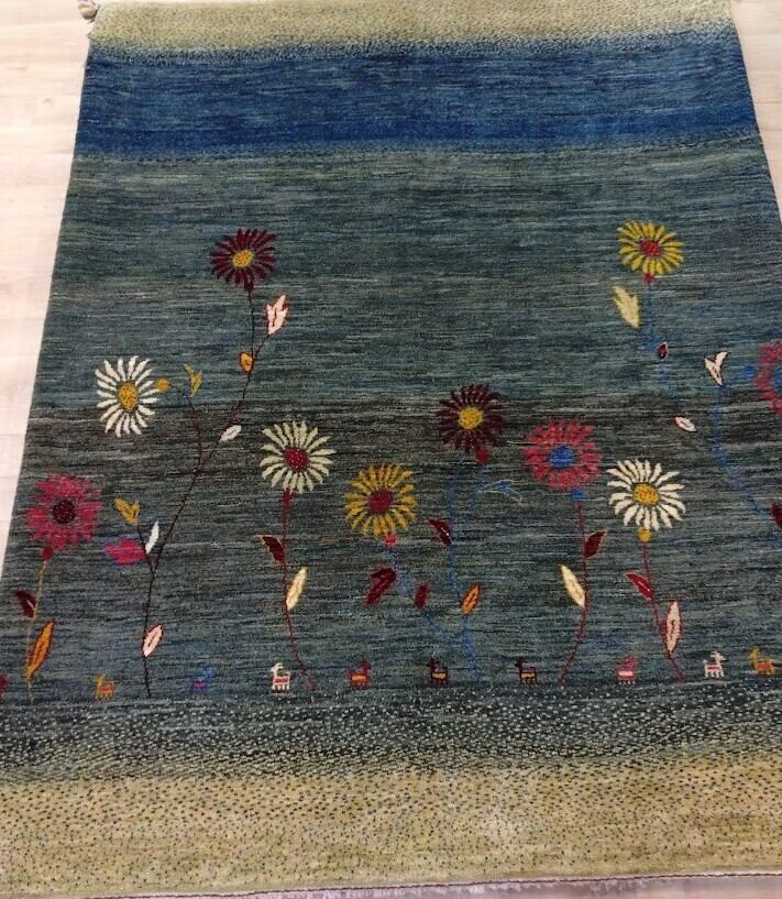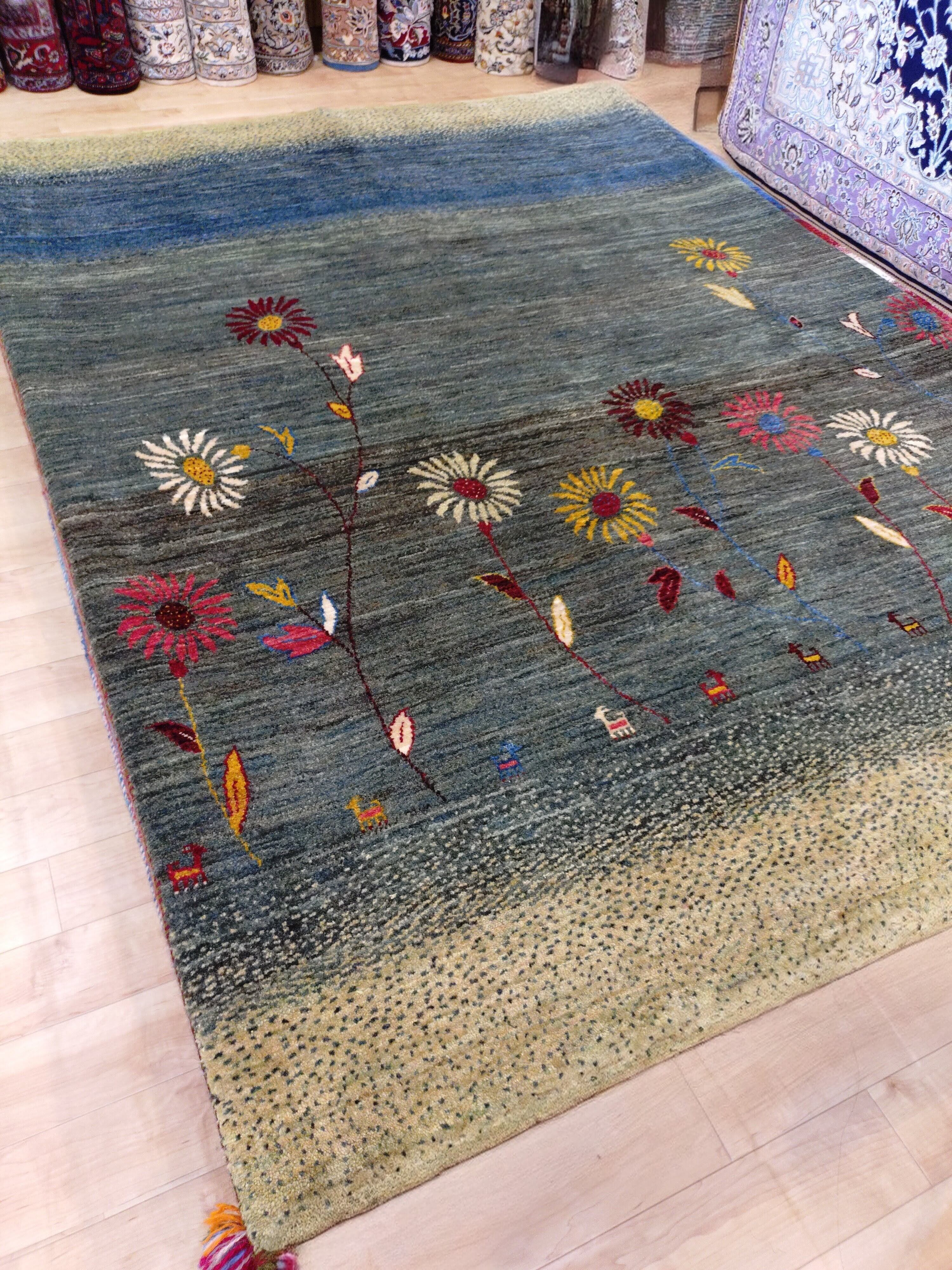 「草原に咲く花々」ペルシャギャッベラグ【約146x200cm】(送料無料)
