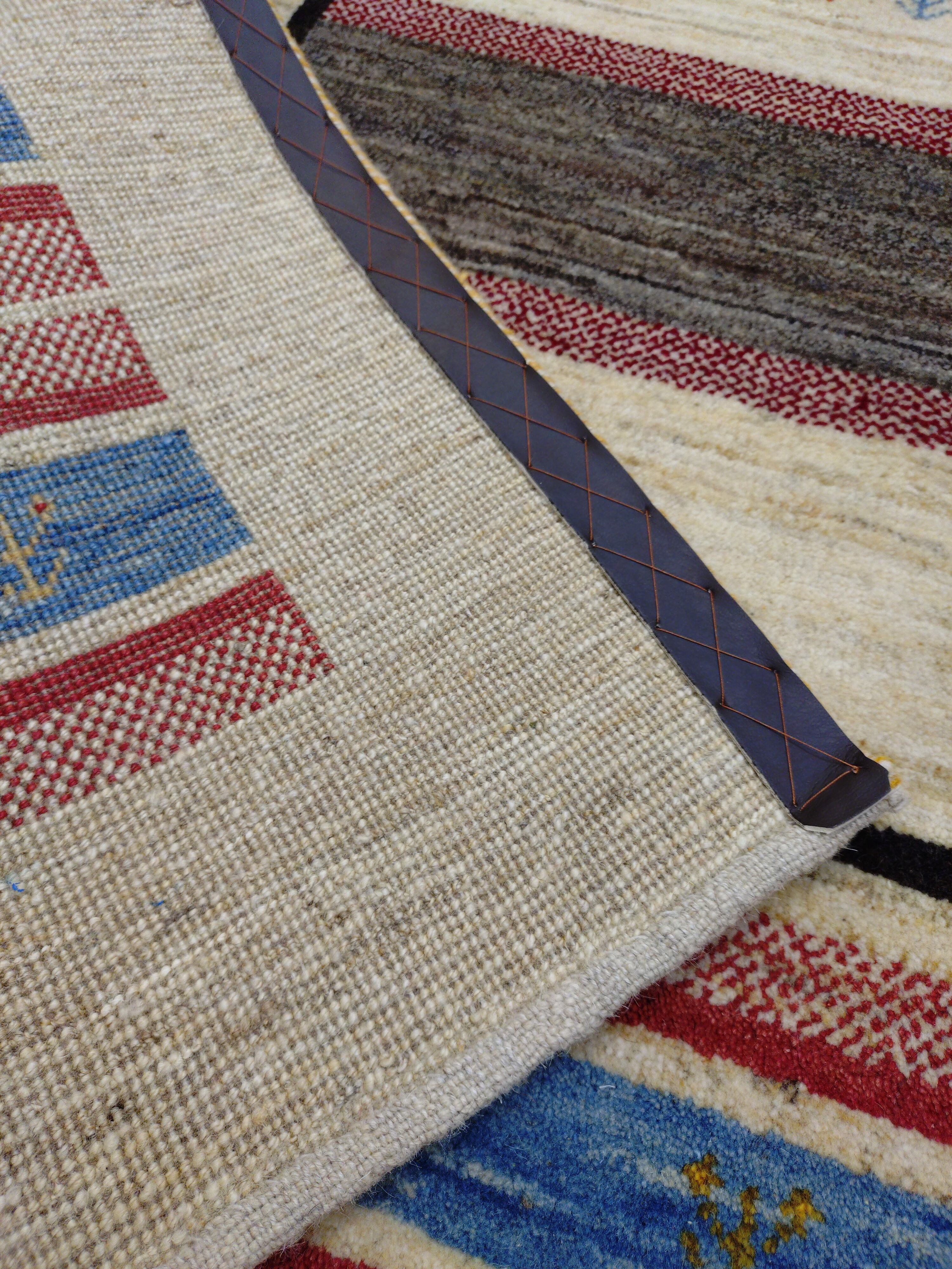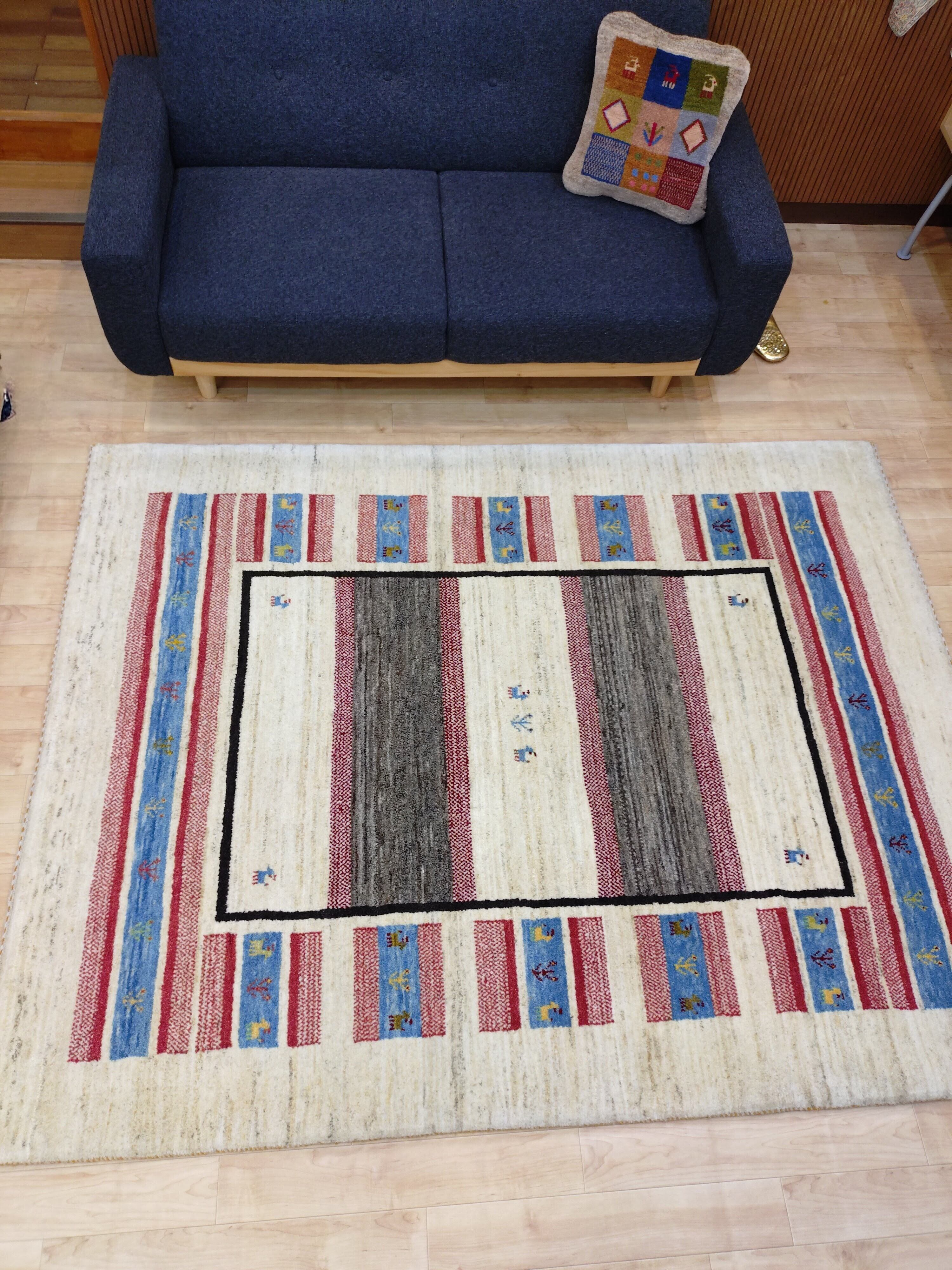 手織りの温かみが感じられるギャッベ絨毯。羊毛そのままの優しい色合いに、生命の木や動物のモチーフが丁寧に織り込まれています。