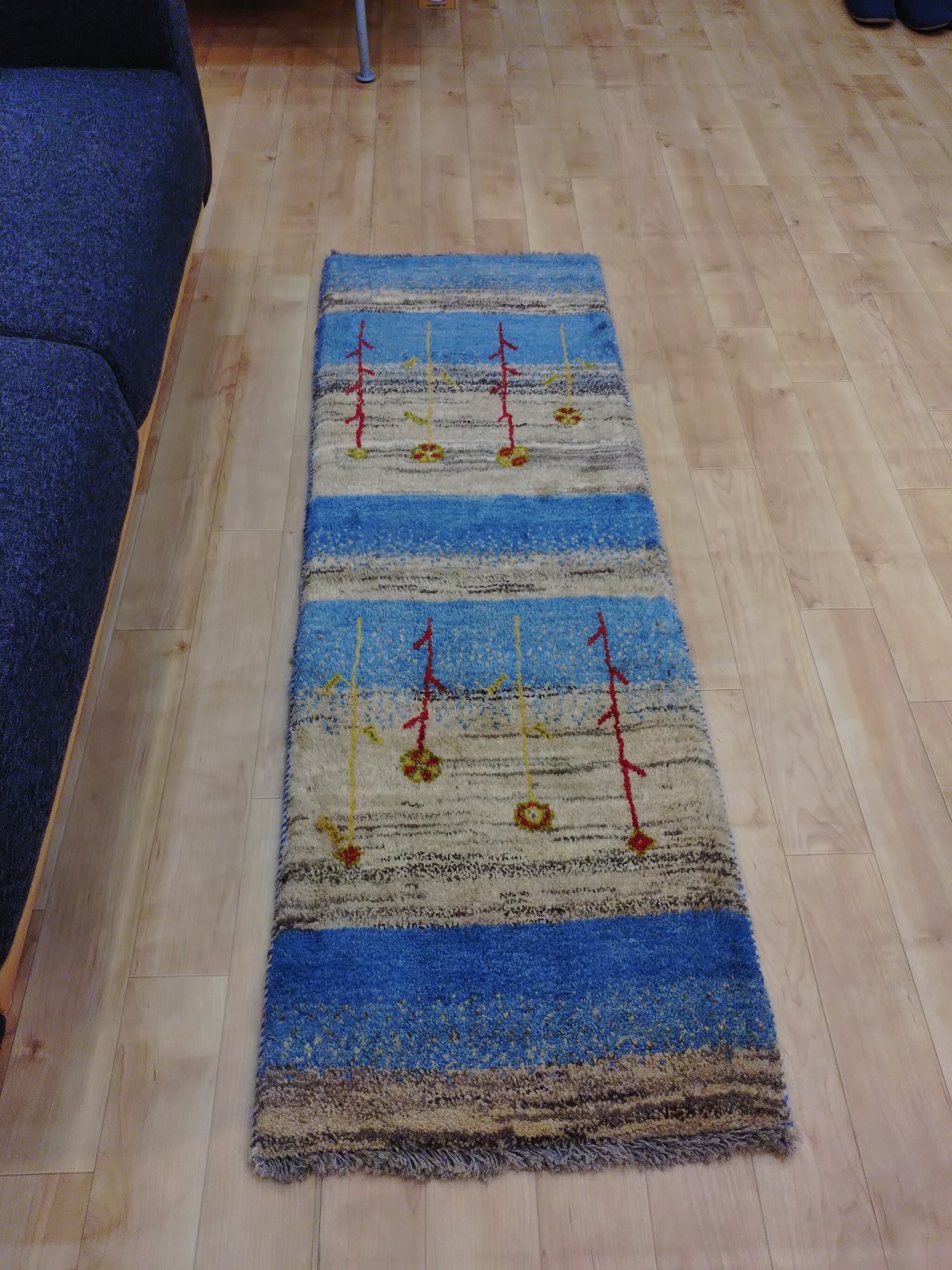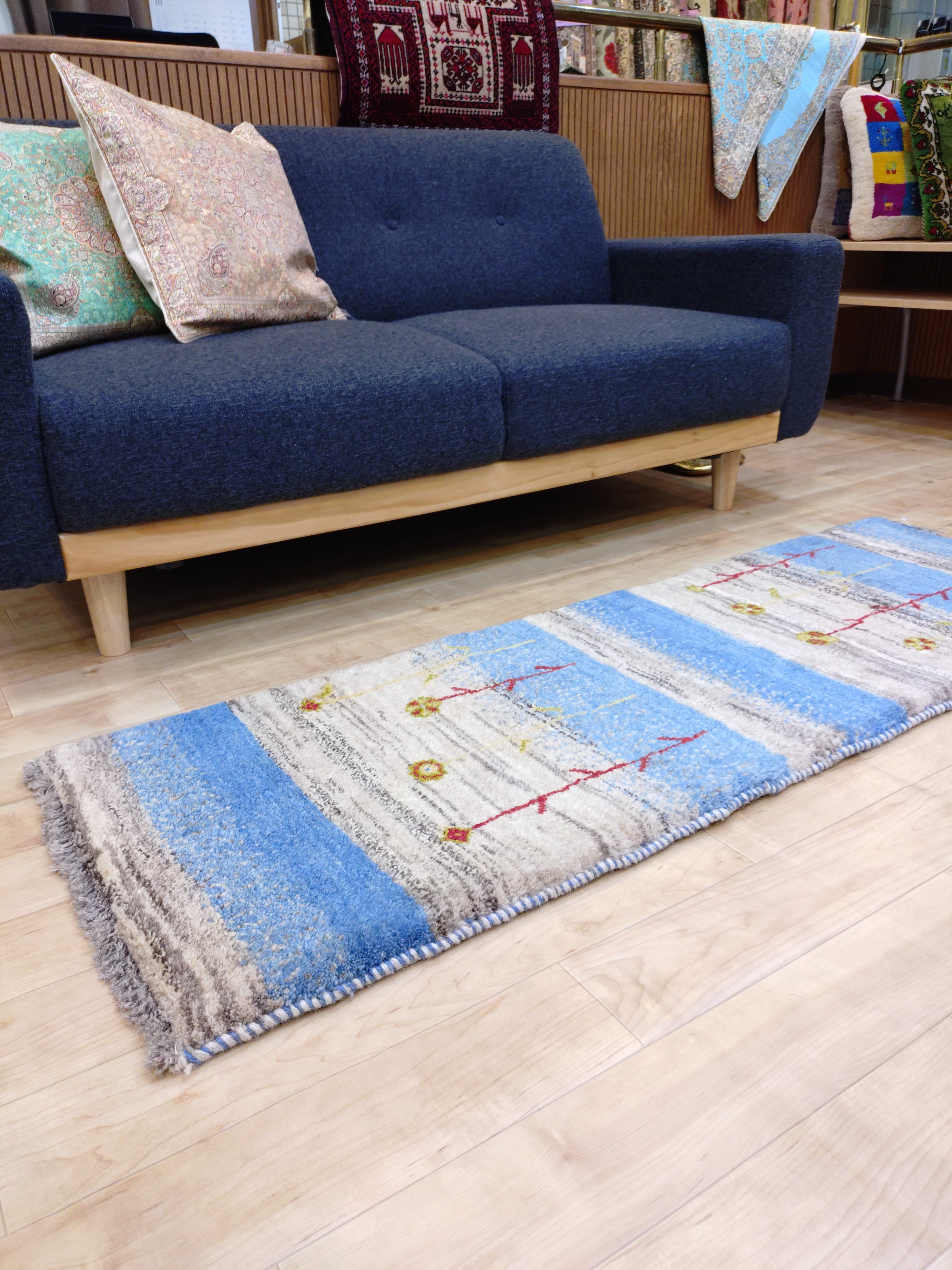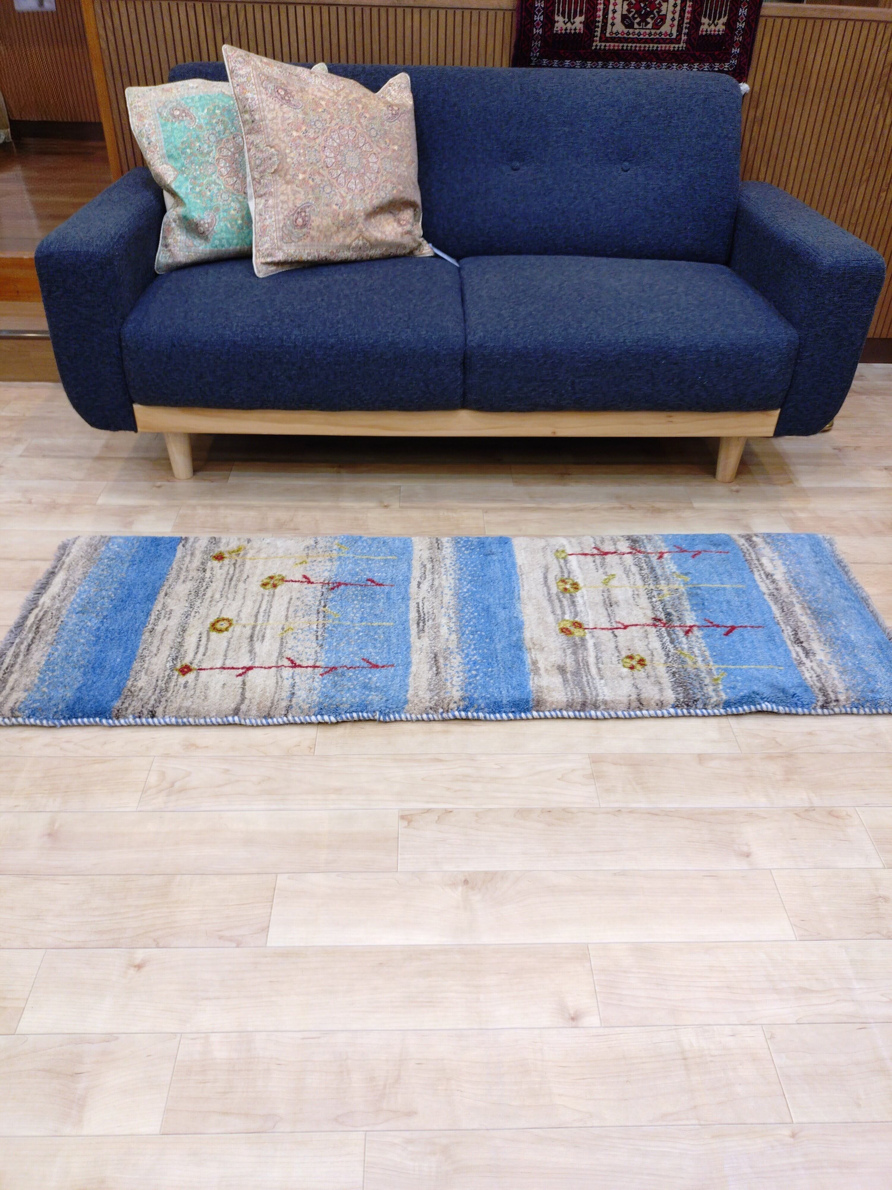 「青い空白い雲」ペルシャギャッベ 【寸法】約50×150cm ※フリンジのサイズは含みません。