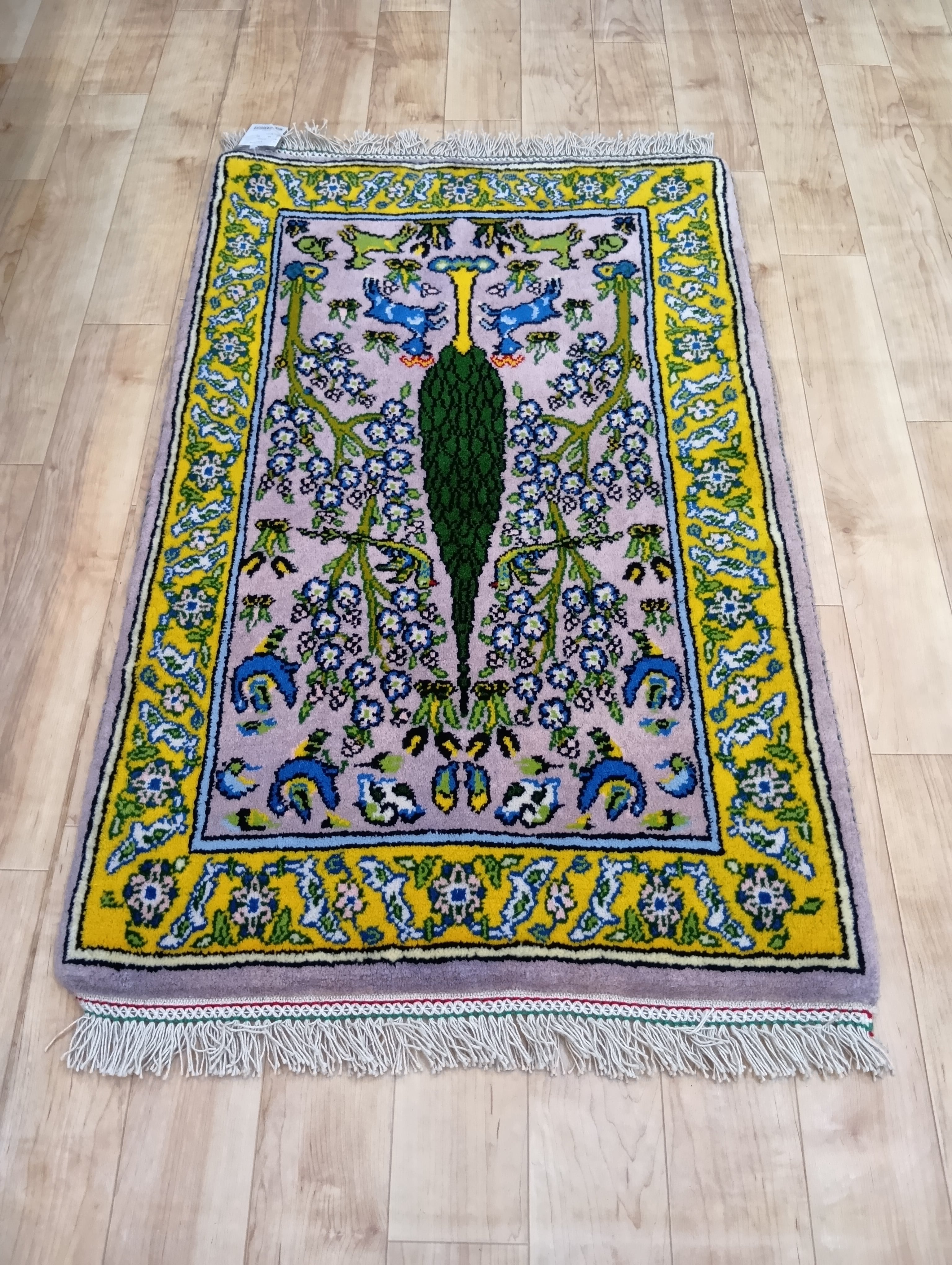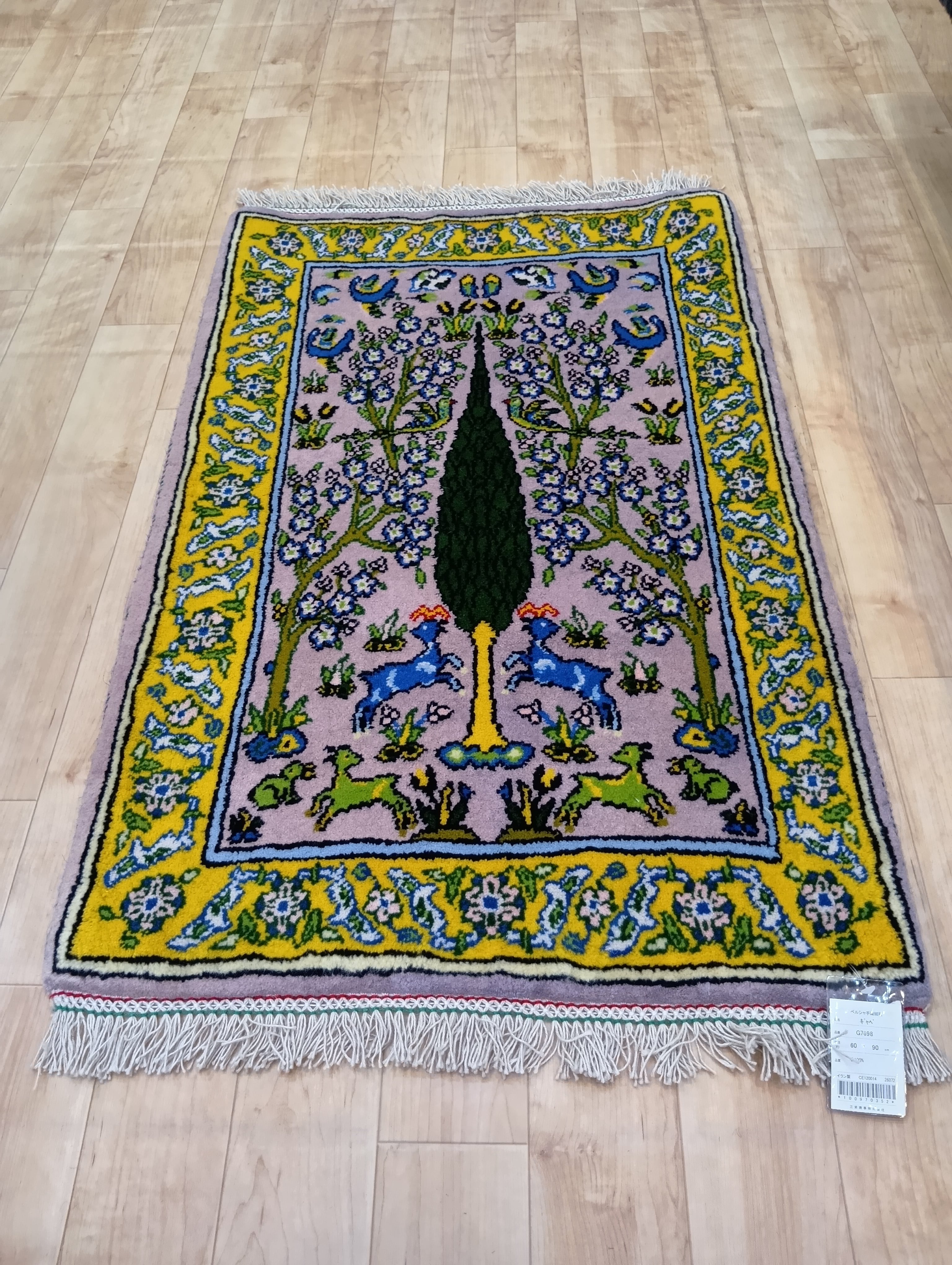 「生命の木と愛らしい鹿」ペルシャ絨毯【約60×90cm】(送料無料)