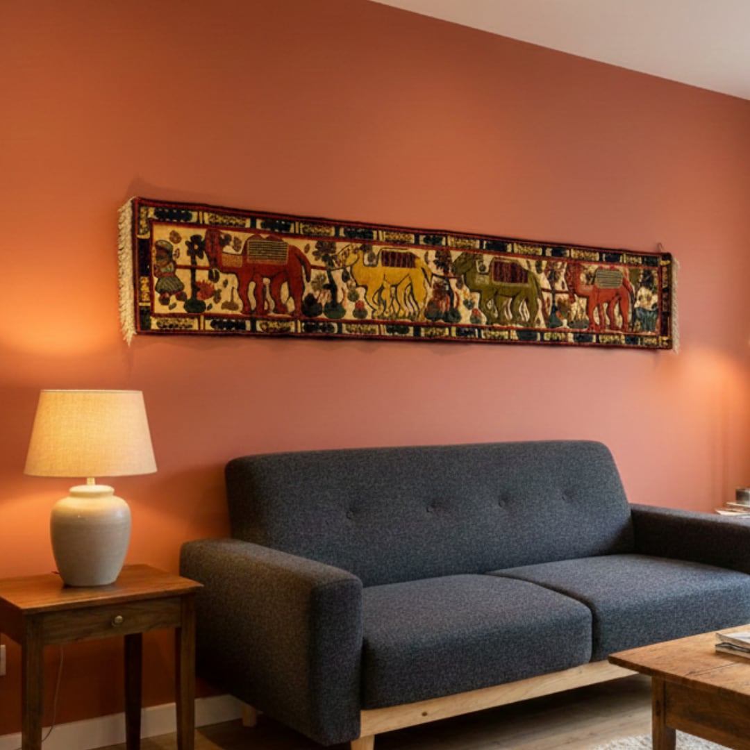 「ラクダのオアシス」(イエロー)ペルシャ手織キリム 【約43×254cm】(送料無料)