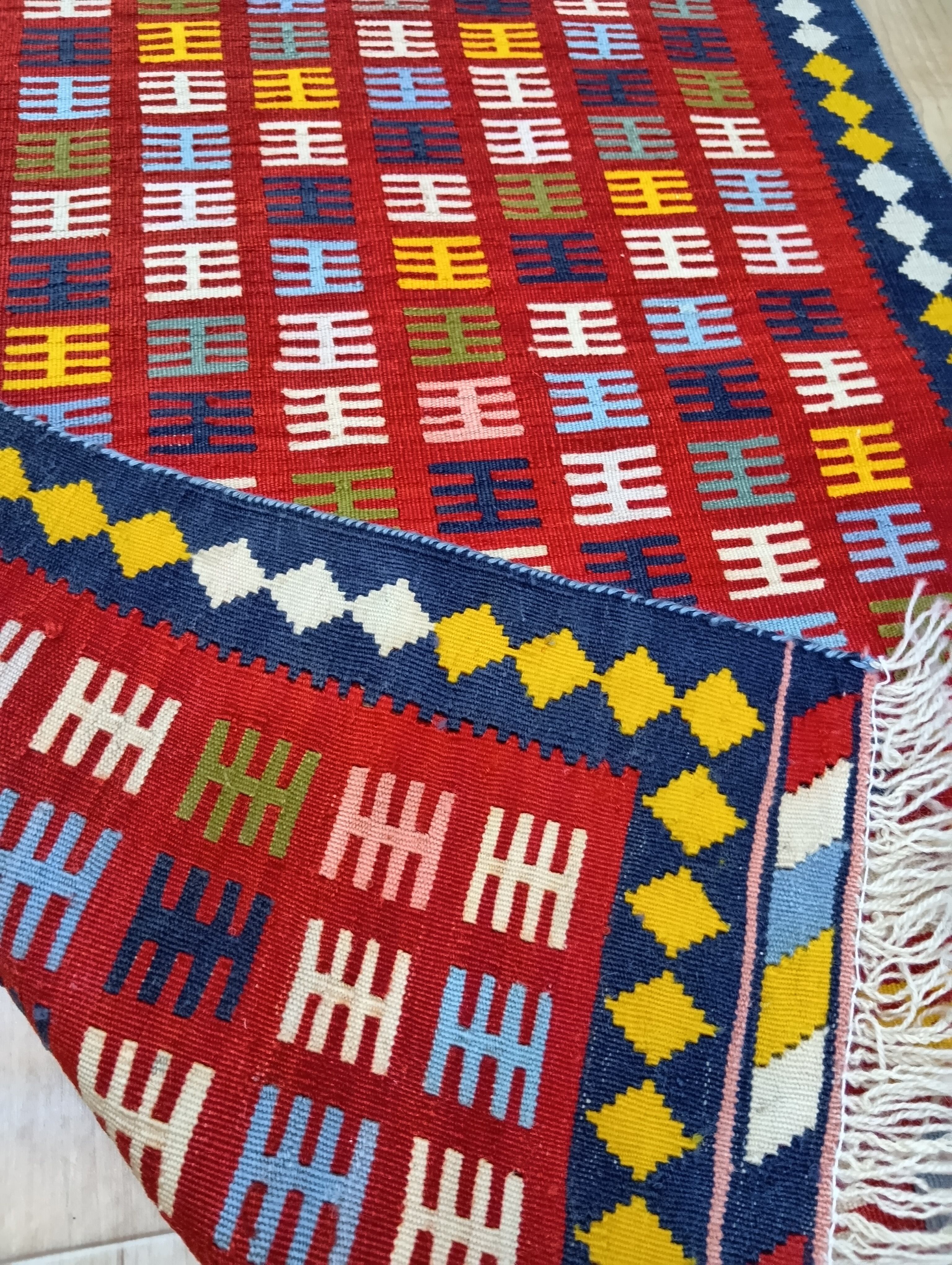 「カラフル&モダン」ペルシャ絨毯キリム【約60×85cm】(送料無料)