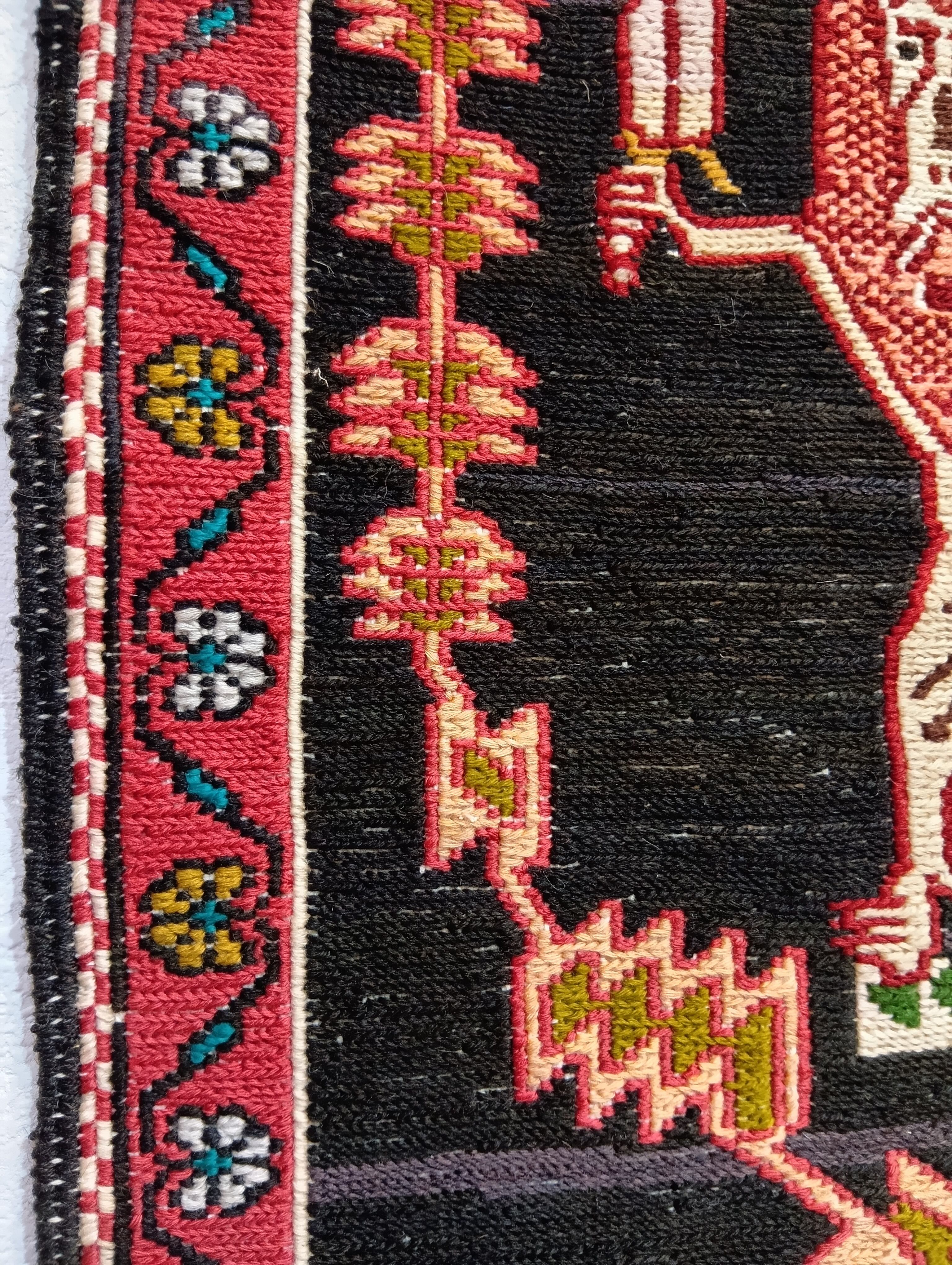 「愛と勇気を!」(ブラック)ペルシャ絨毯キリム【約50×50cm】(送料無料)