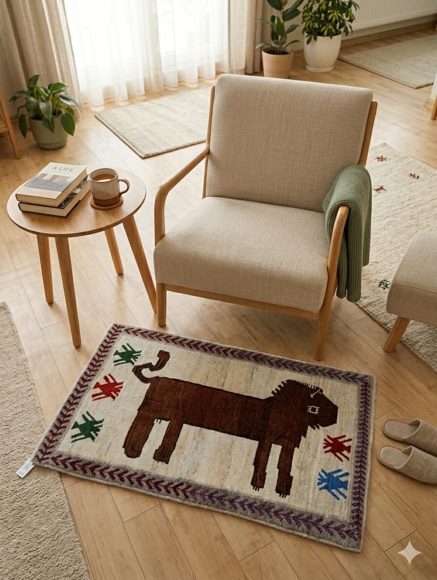 「愛嬌たっぷりのライオン柄」ペルシャギャッベ(約80×124cm)送料無料
