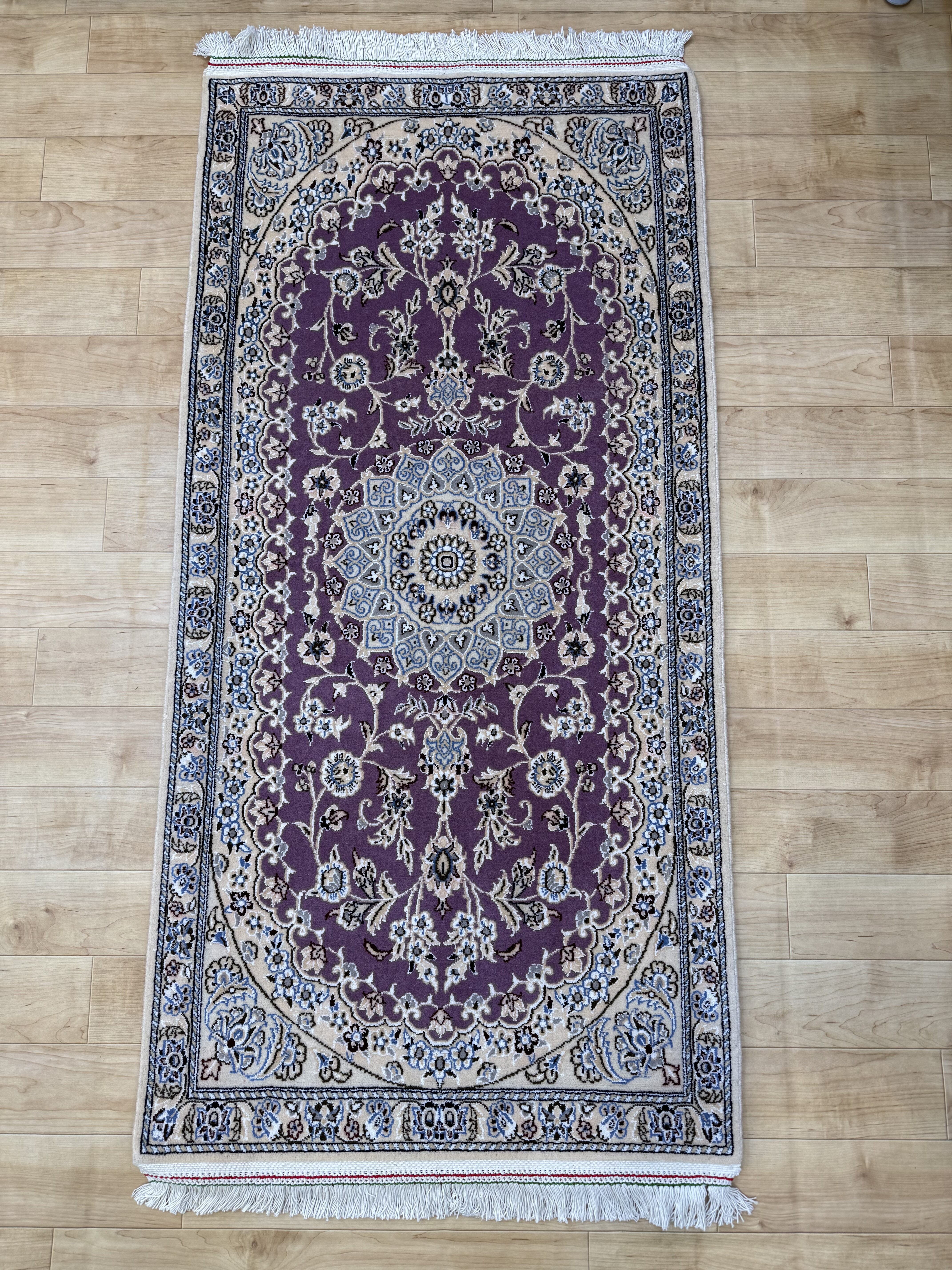 「心落ち着く空間を演出する、気品あふれるパープルの伝統柄」ペルシャ絨毯 (約71×145cm )送料無料