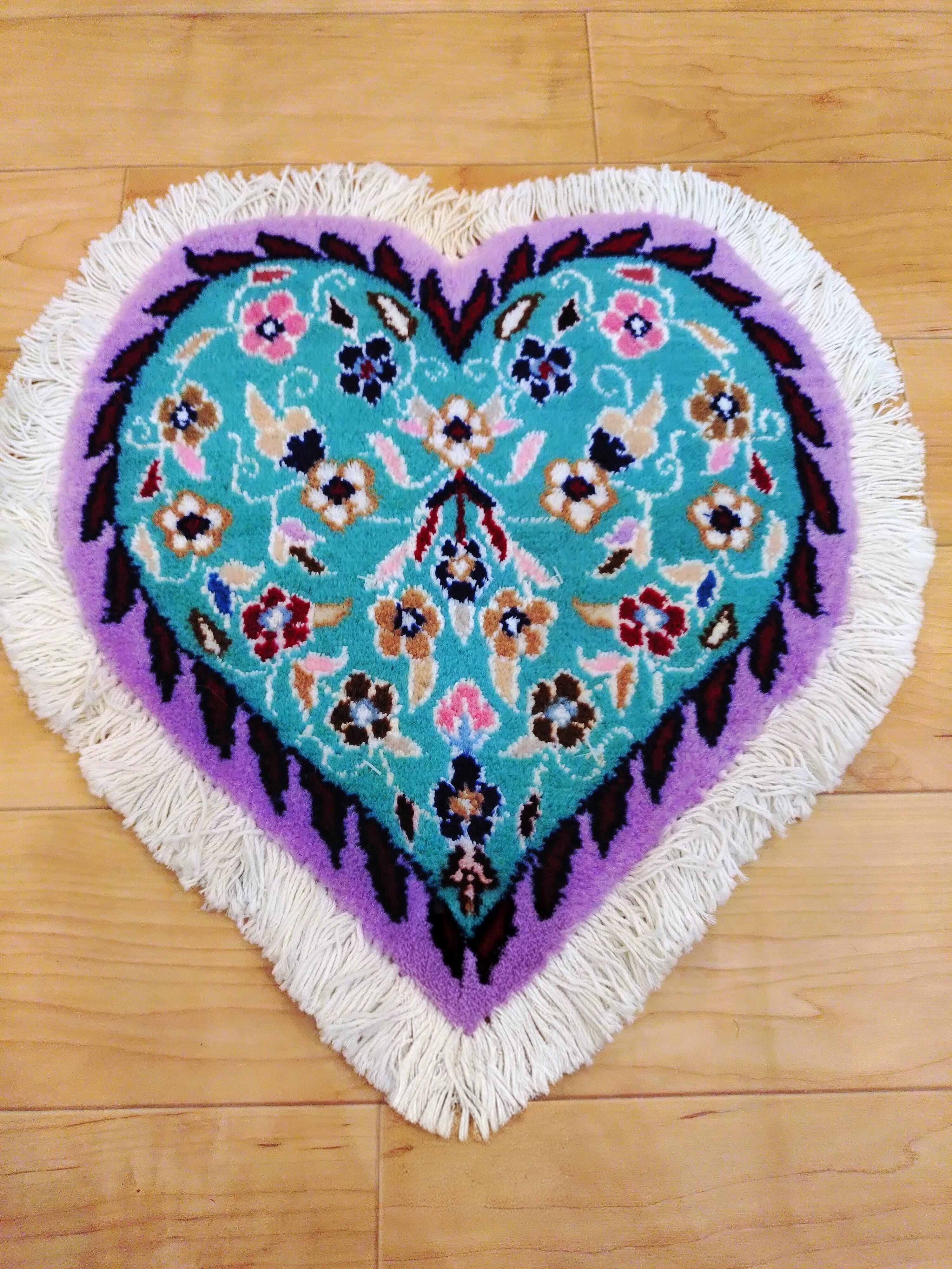 幸せを呼ぶハート型の手織り絨毯。