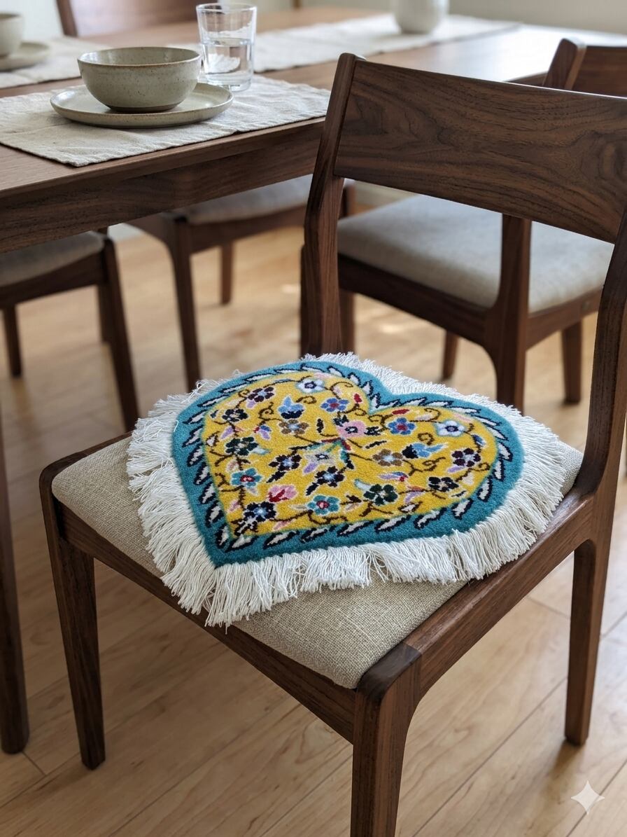 手描きのような愛らしさ 、ハートの手織り絨毯 、ギフトなどにも喜ばれる華やかなミニラグです。