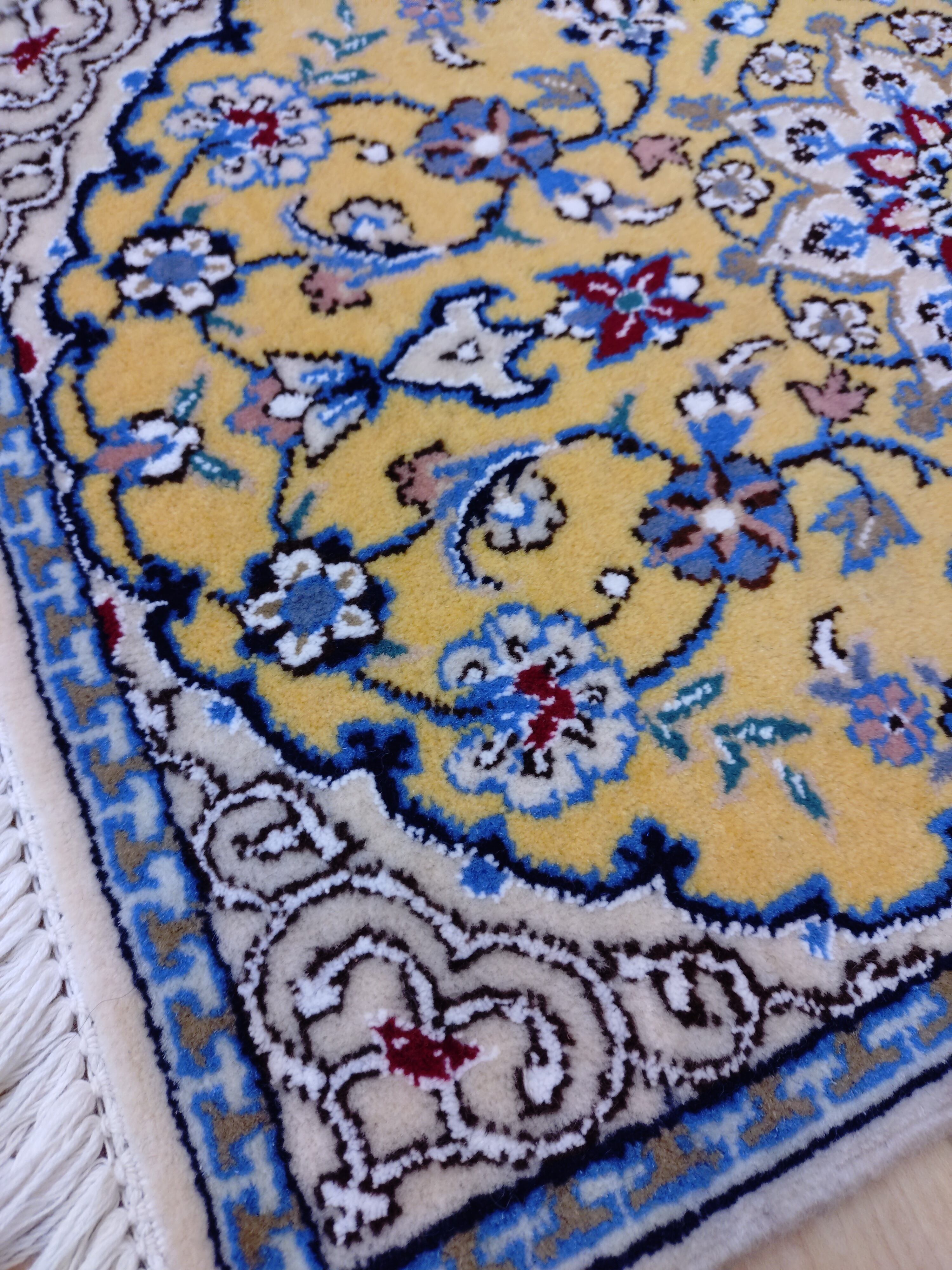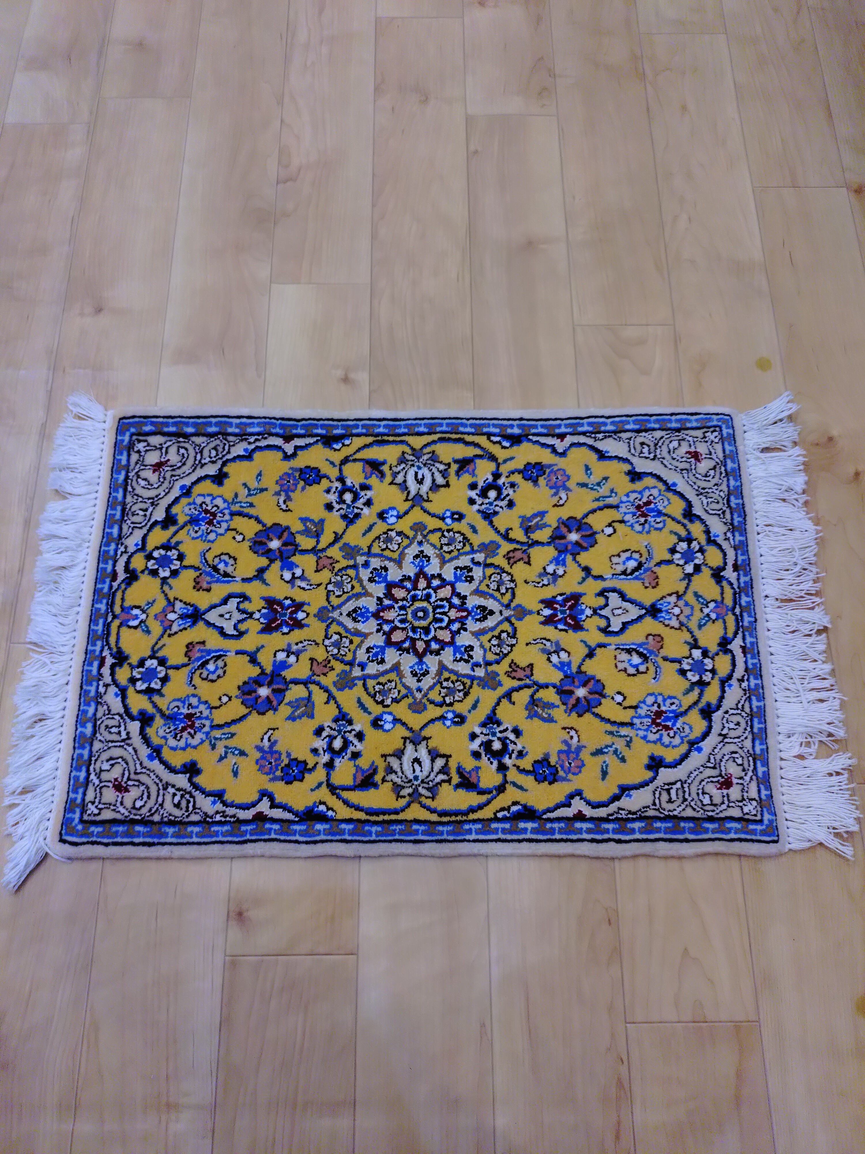 華やぐ玄関】鮮やかなマスタードイエローの手織りペルシャ絨毯 (41×59cm) 送料無料
