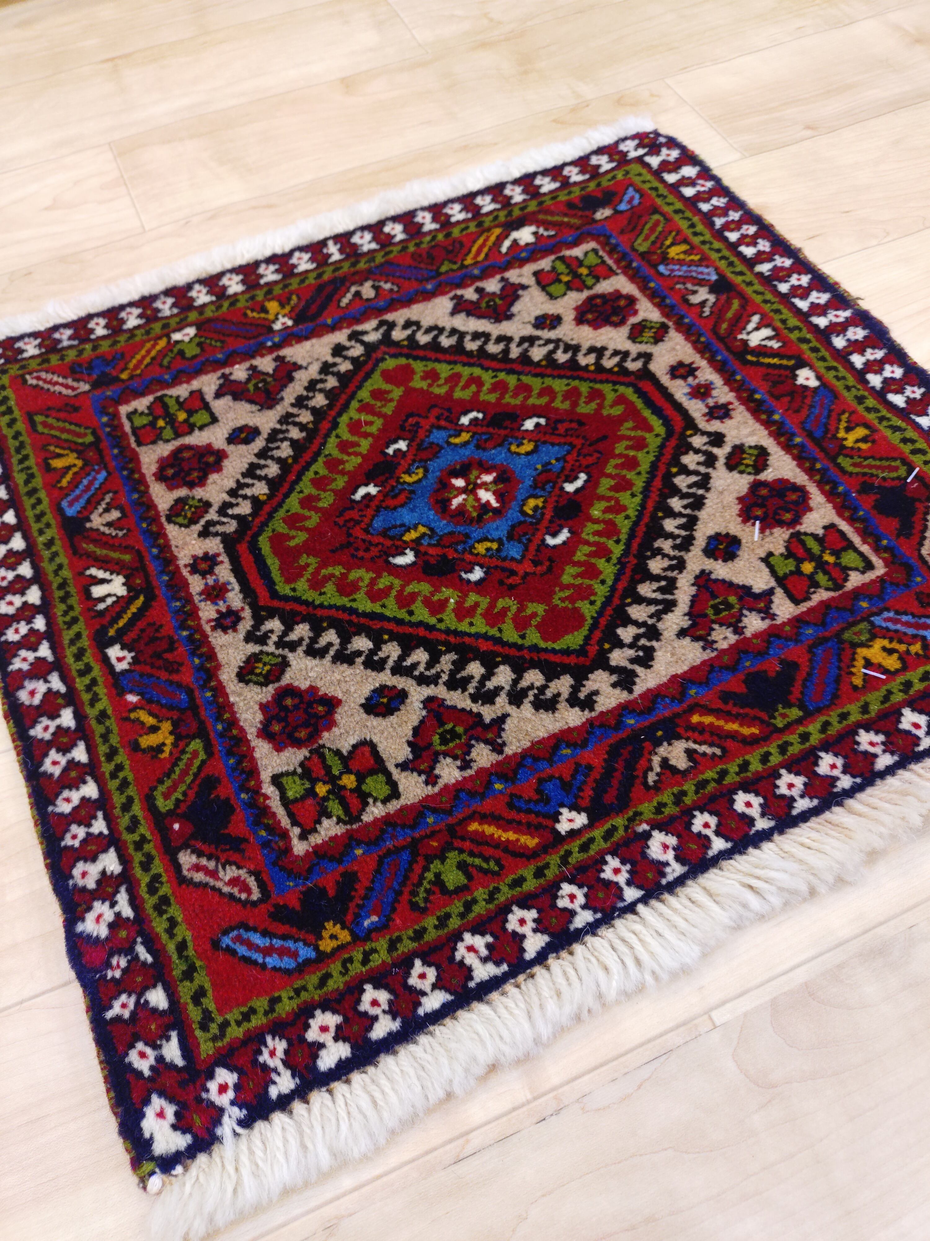 「暮らしを彩る小さな芸術品」トライバルミニラグ 約40×40cm【送料無料】
